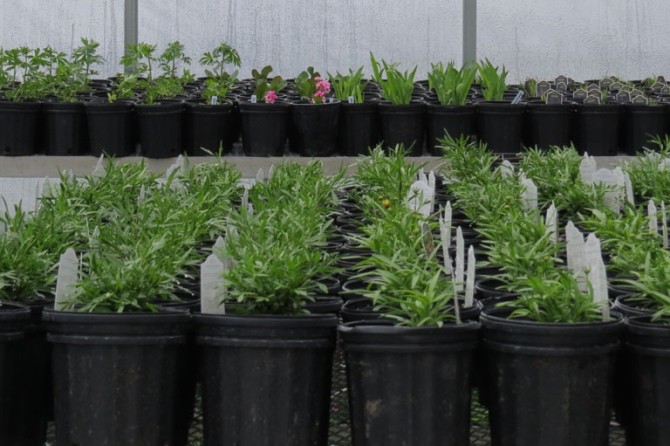 The Production Greenhouse is in use year round. Many of our vegetable plants are started by seed in the greenhouse. We start trees from cuttings and seeds in the greenhouse. For the Christmas and Easter holidays we will grow respectively around 100 poinsettias and easter lilies to give to friends and family.